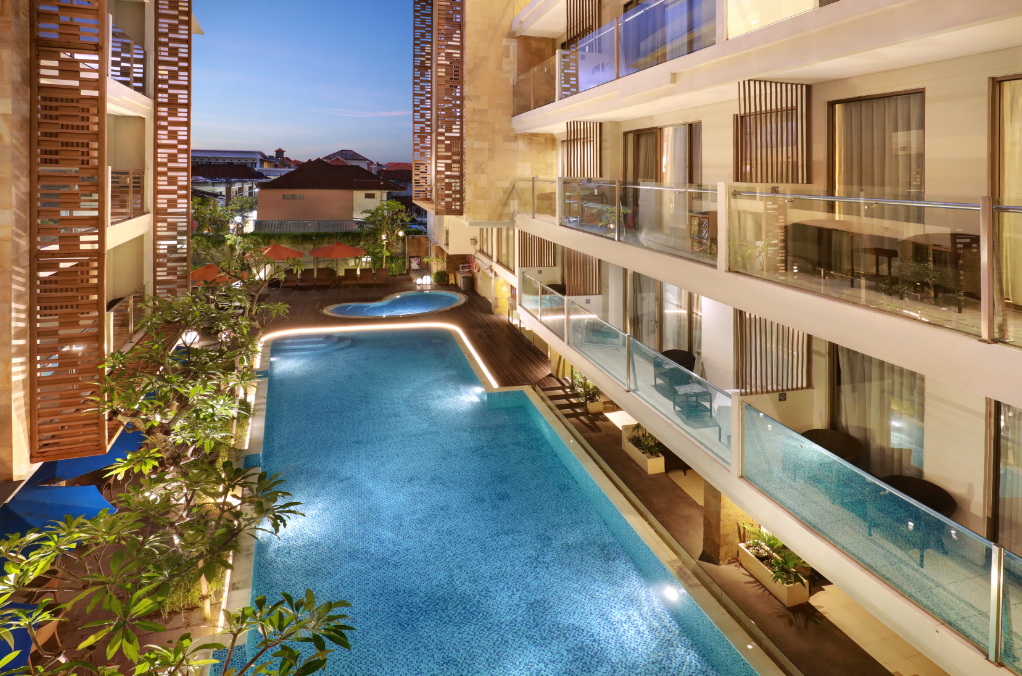 하퍼 꾸따 호텔은 현대적이면서도 소박한 매력을 지닌 호텔로, 세련된 디자인과 현대적인 인테리어가 특징입니다.