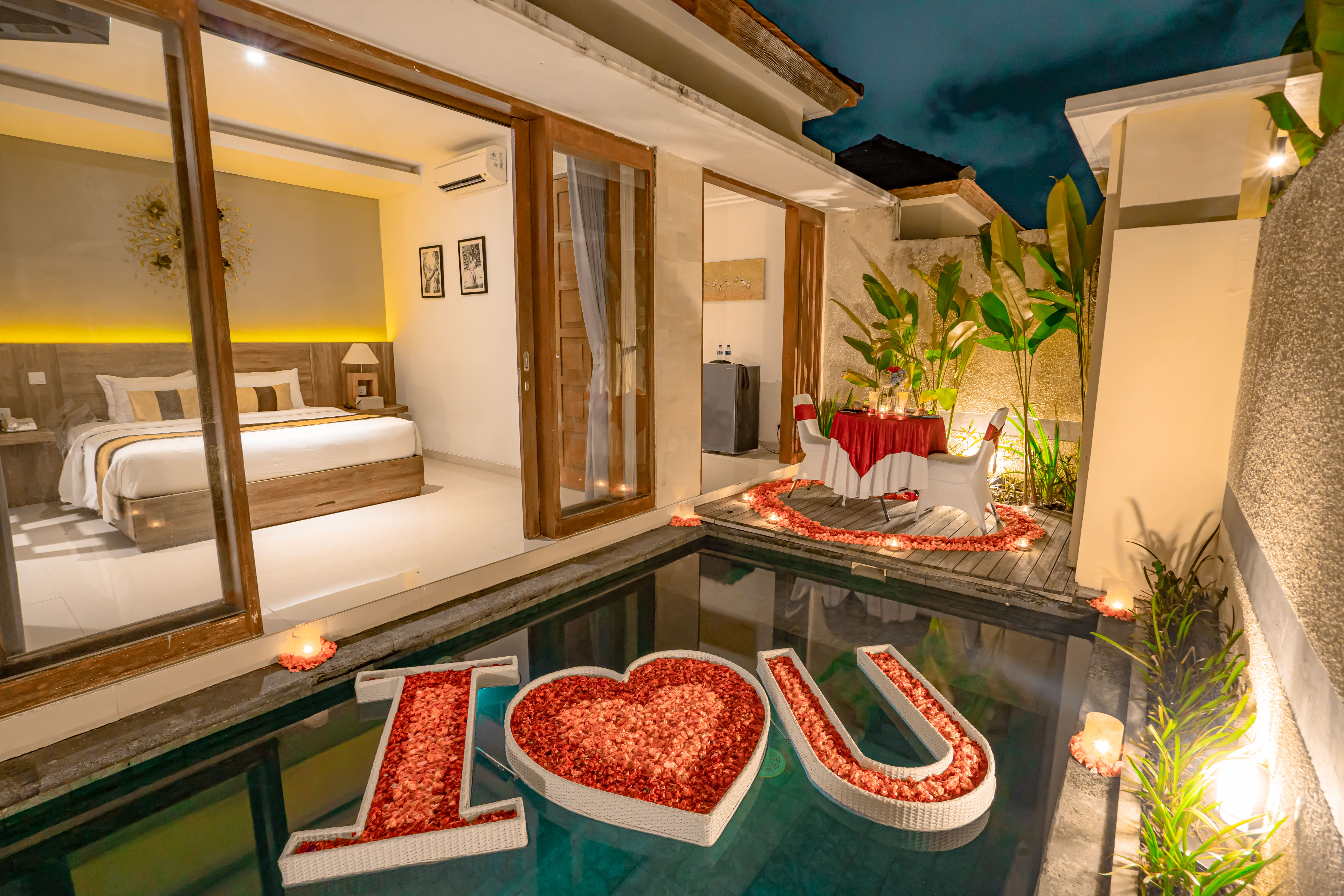 아름다운 경치와 전통적인 발리식 정원으로 둘러싸여 있어 완전한 프라이버시를 제공합니다. 개인 수영장에서 프라이빗하게 수영을 즐기실 수 있습니다.