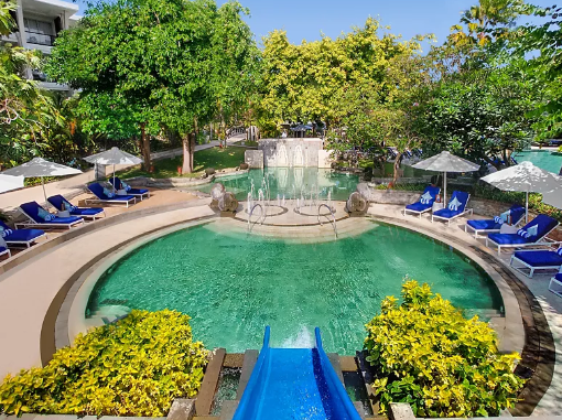 발리풍 디자인과 프랑스의 우아함이 결합된 5성급 비치 리조트입니다. 2018년에 리모델링 되어 깔끔하고 고급스러움이 잘 유지되고 있으며 여러 글로벌 정상 회담과 회의에서 국제적인 지도자들을 맞이했던 곳입니다. 소피텔 누사 두아 비치 리조트는 고객들의 편의를 최우선으로 생각하고 있으며, 휴양과 휴식을 완벽하게 즐길 수 있는 곳입니다.