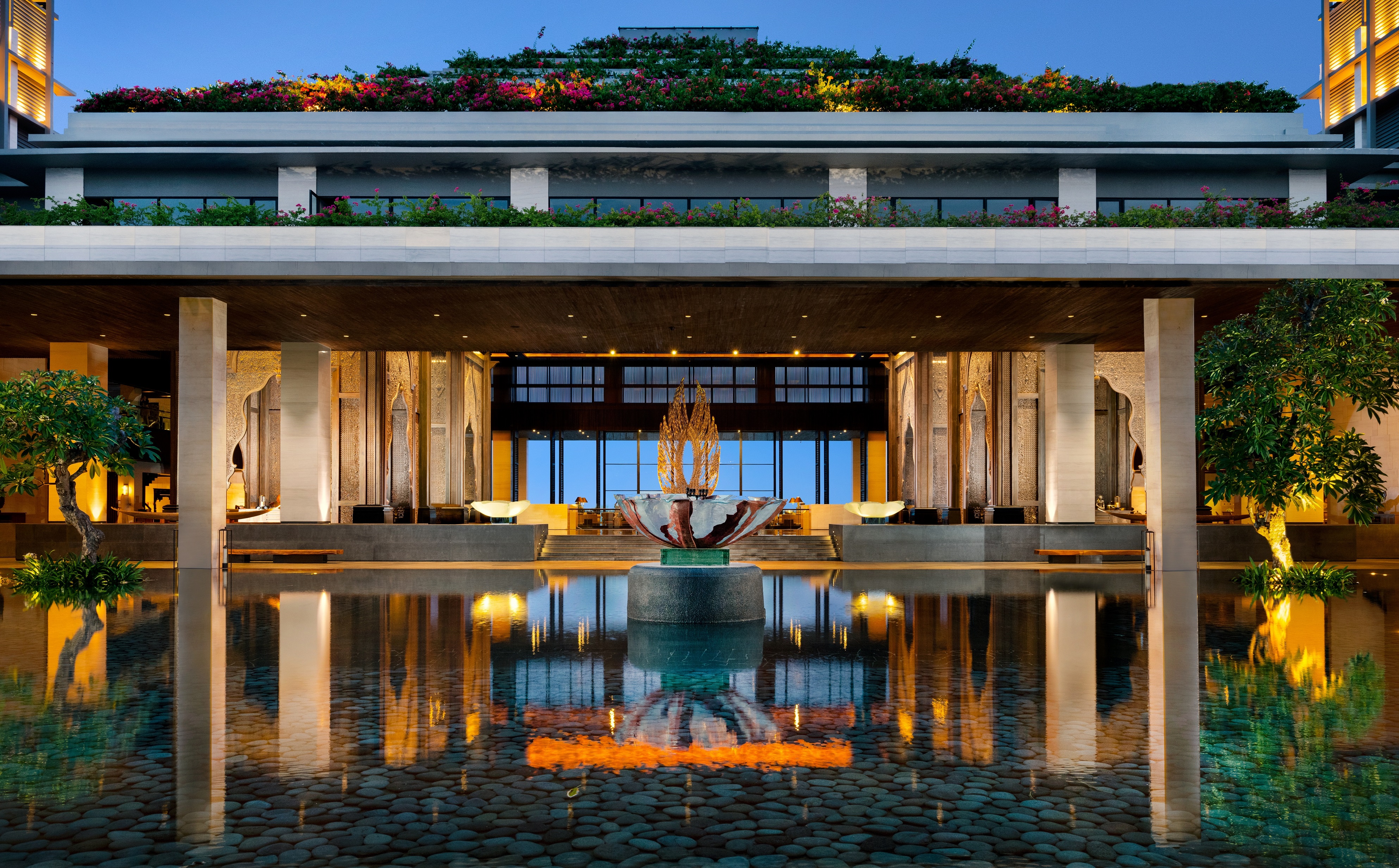 누사두아의 장엄한 절벽 위에 자리한 아푸르바 캠핀스키 발리는 인도양과 울창한 열대 정원을 한눈에 담을 수 있는 최상의 럭셔리 비치프론트 리조트입니다. 인도네시아의 우아함을 그대로 담아낸 이곳은, 마치 웅장한 오픈 에어 극장을 연상시키는 독창적인 공간을 제공합니다.
