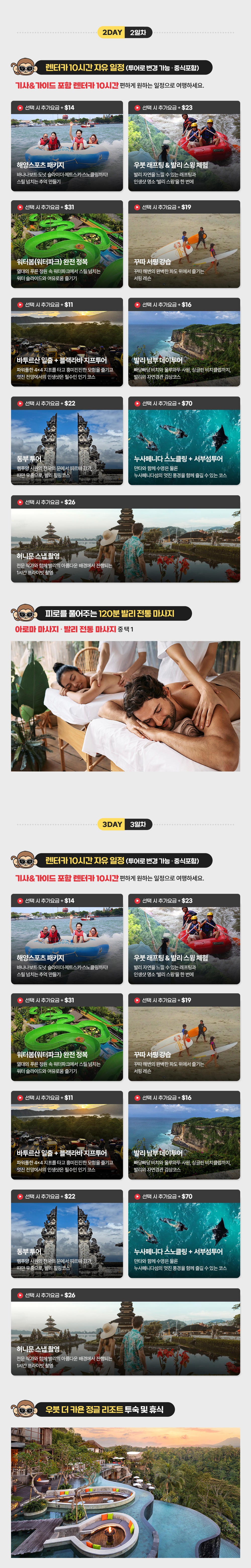 ※ 해당 상품에 포함되어 있는 숙소 이외에도 발리톡톡 제휴 숙소로 변경하여 견적 가능합니다.